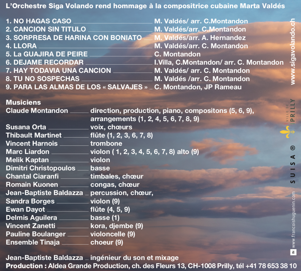 Siga Volando, orquesta apegada al formato instrumental de la charanga típica cubana fue fundada en 2007 por el pianista suizo Claude Montadon y su esposa la percusionista Chantal Ciaranfi. Cuatro años después, se produjo el encuentro entre Siga Volando y la cantante cubano-suiza Susana Orta, sellando en un concierto grabado para RTS el inicio de una prolongada colaboración que dura desde 2012 hasta hoy.